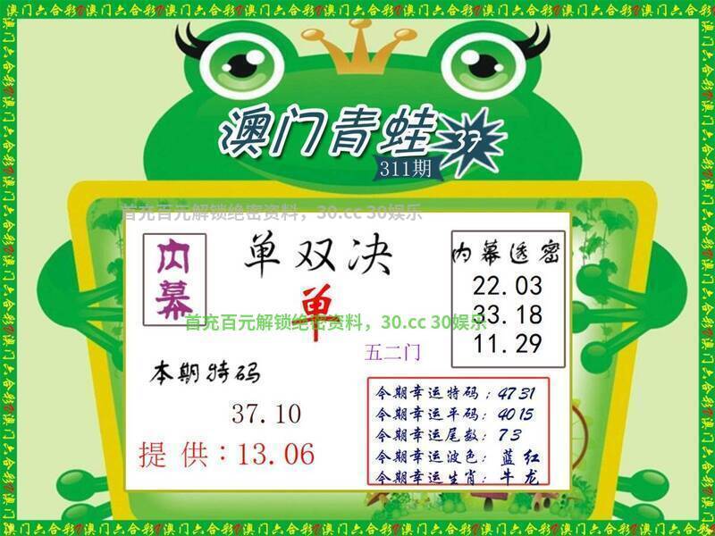 311期:Ω前后两肖┣后肖+鼠牛┫开:蛇37错