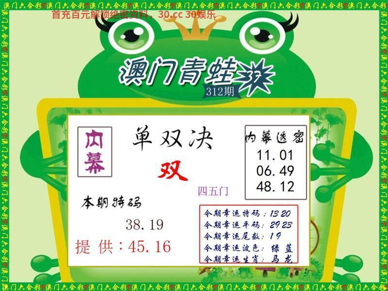 312期:Ω前后两肖┣前肖+猴鸡┫开:龙14准